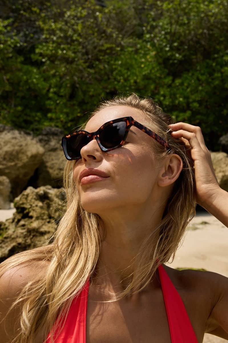 Descubre las gafas de sol Santorini, el accesorio definitivo que fusiona el glamour del diseño cat eye con la esencia atemporal de las wayfarer. Su montura en un sofisticado patrón carey marrón, fabricada en acetato de alta calidad, no solo aporta un toque de elegancia a cualquier look, sino que garantiza una comodidad y durabilidad excepcionales.